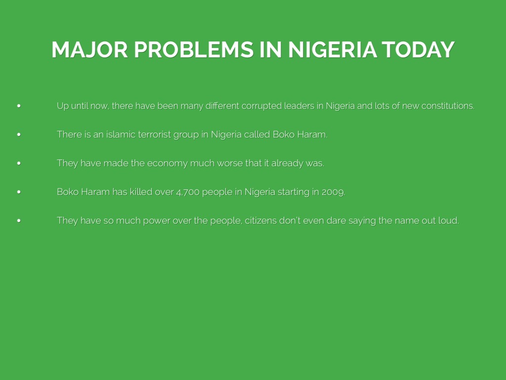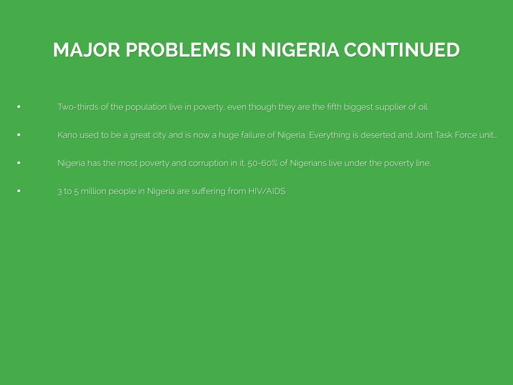 Nigeria has the most poverty and corruption in it. 50-60% of Nigerians live under the poverty line.