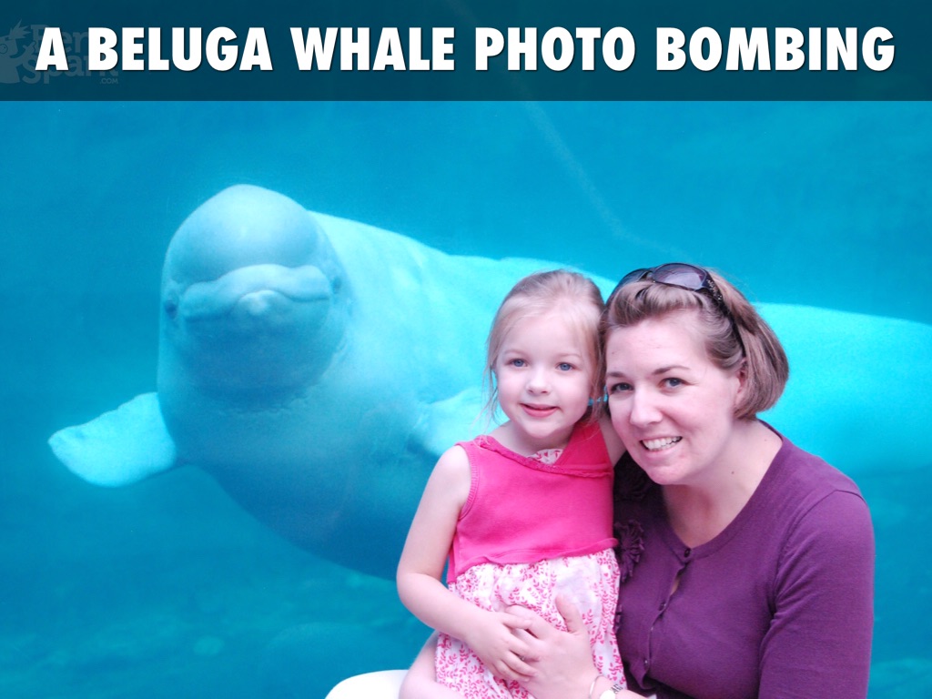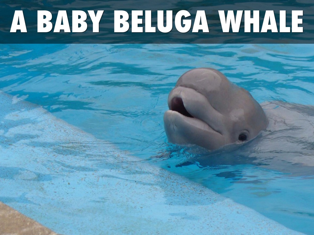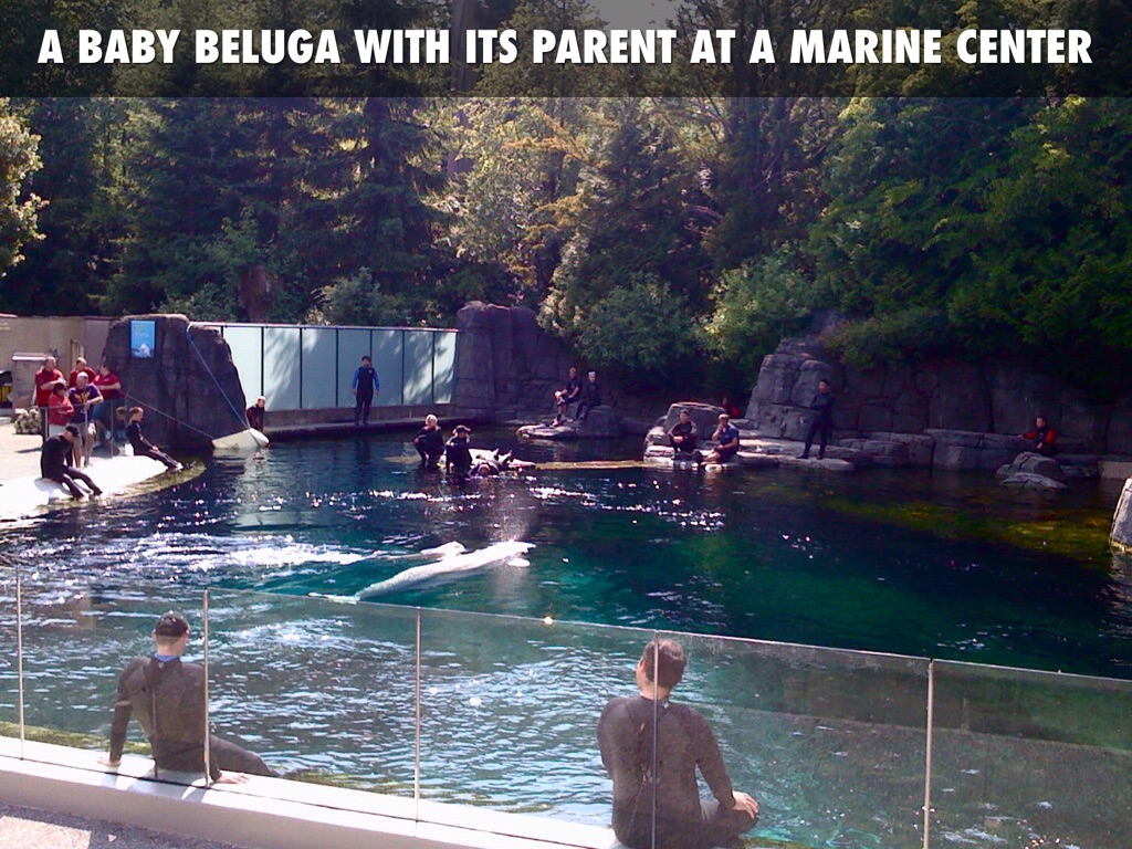 A BABY BELUGA WITH ITS PARENT AT A MARINE CENTER