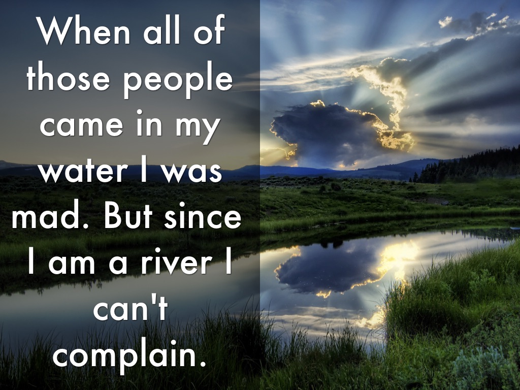 When all of those people came in my water I was mad. But since I am a river I can't complain.