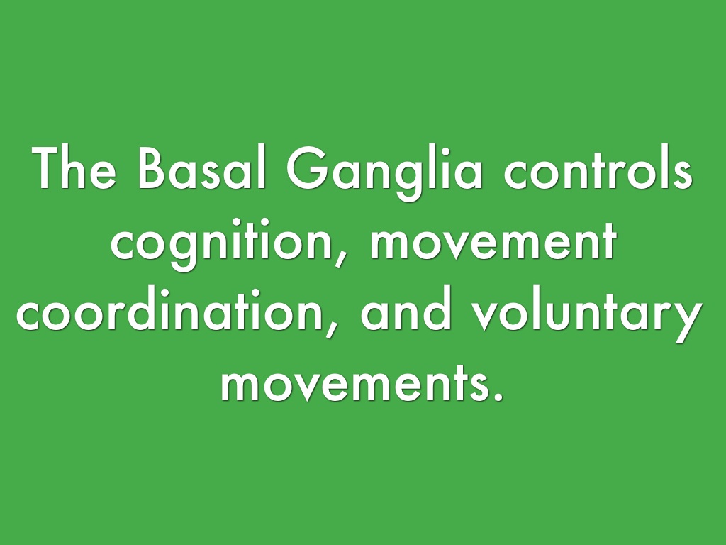 The Basal Ganglia controls cognition, movement coordination, and voluntary movements.