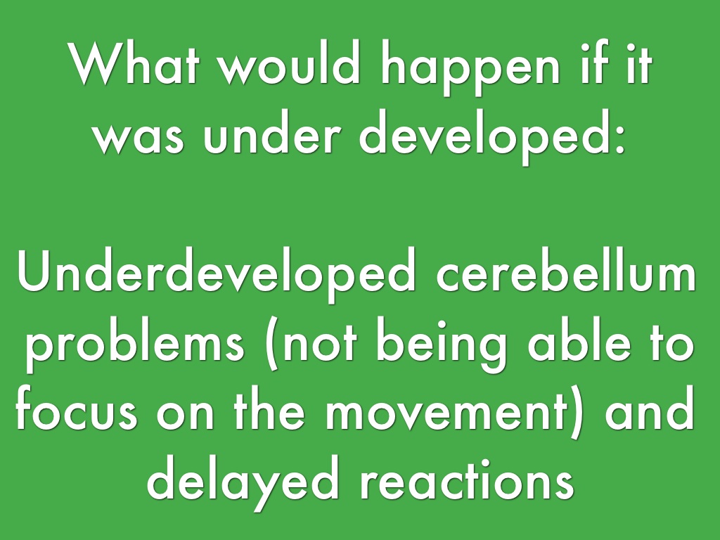 Underdeveloped cerebellum problems (not being able to focus on the movement) and delayed reactions