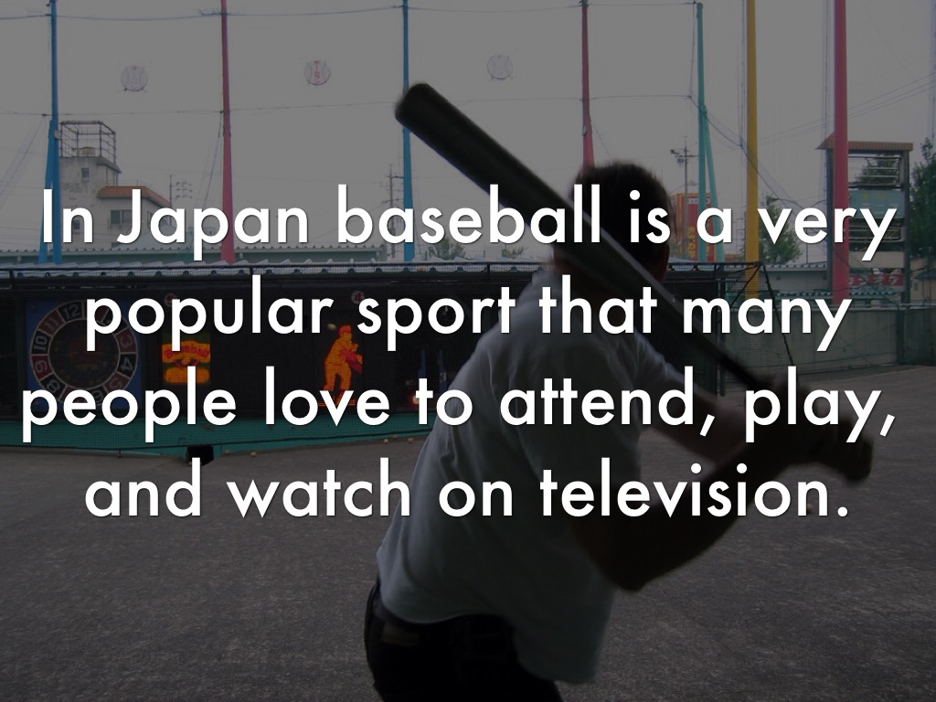 In Japan baseball is a very popular sport that many people love to attend, play, and watch on television.