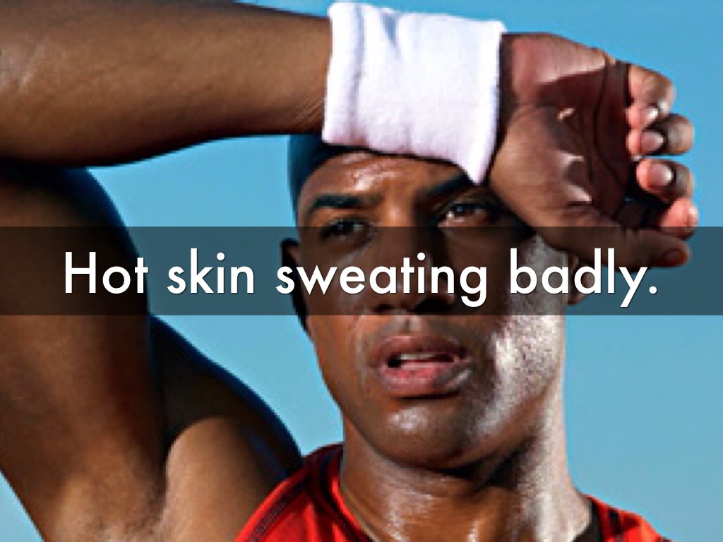 Hot skin sweating badly.