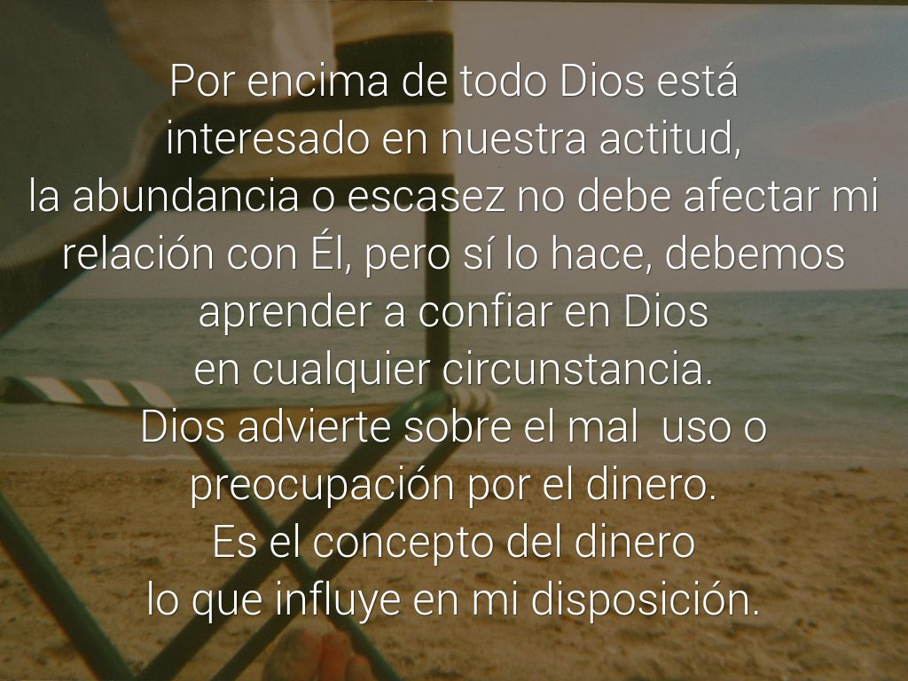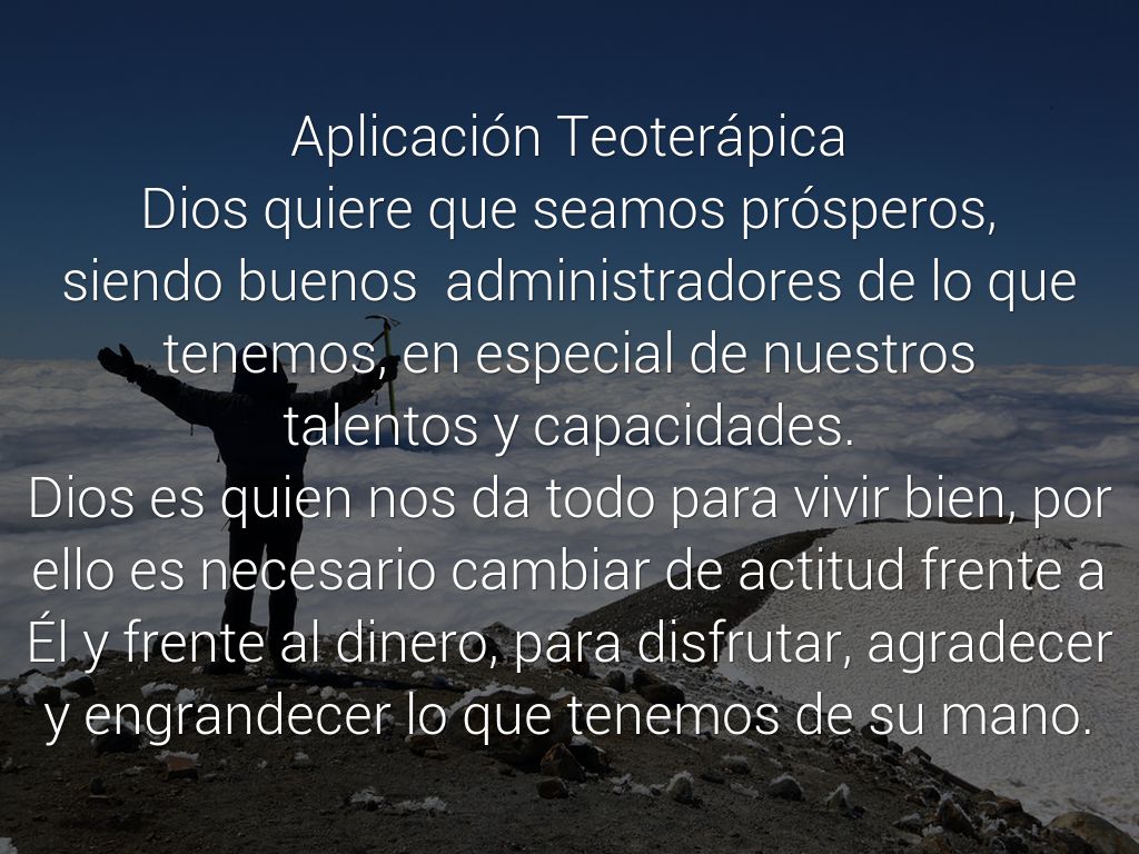 Dios es quien nos da todo para vivir bien, por ello es necesario cambiar de actitud frente a Él y frente al dinero, para disfrutar, agradecer y engrandecer lo que tenemos de su mano.