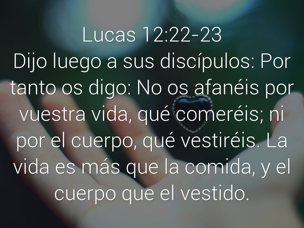 Dijo luego a sus discípulos: Por tanto os digo: No os afanéis por vuestra vida, qué comeréis; ni por el cuerpo, qué vestiréis. La vida es más que la comida, y el cuerpo que el vestido.