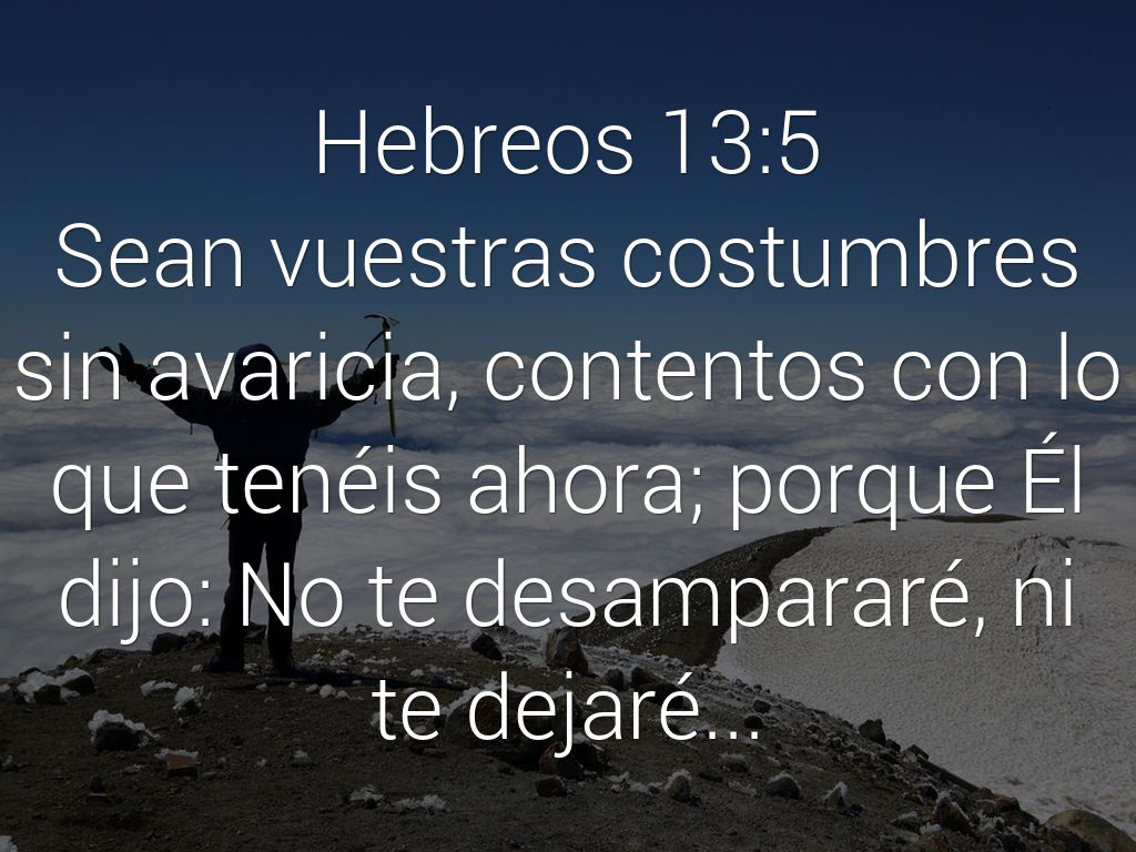 Sean vuestras costumbres sin avaricia, contentos con lo que tenéis ahora; porque Él dijo: No te desampararé, ni te dejaré...