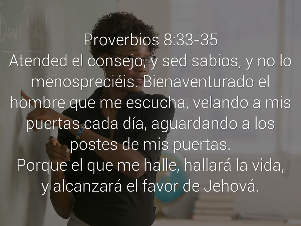 Atended el consejo, y sed sabios, y no lo menospreciéis. Bienaventurado el hombre que me escucha, velando a mis puertas cada día, aguardando a los postes de mis puertas.