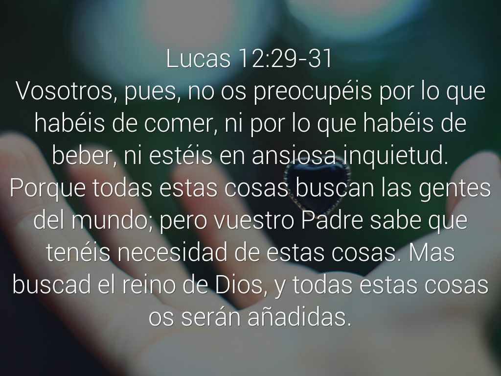 Porque todas estas cosas buscan las gentes del mundo; pero vuestro Padre sabe que tenéis necesidad de estas cosas. Mas buscad el reino de Dios, y todas estas cosas os serán añadidas.