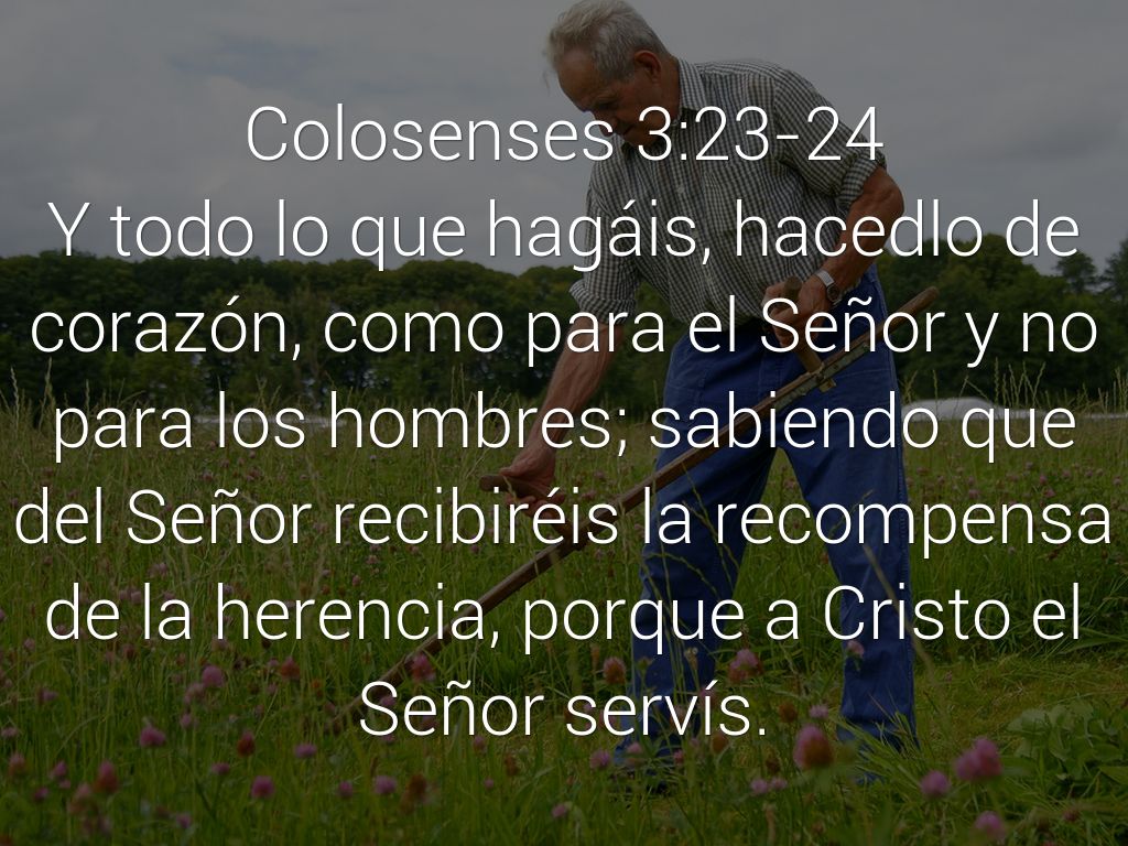 Y todo lo que hagáis, hacedlo de corazón, como para el Señor y no para los hombres; sabiendo que del Señor recibiréis la recompensa de la herencia, porque a Cristo el Señor servís.