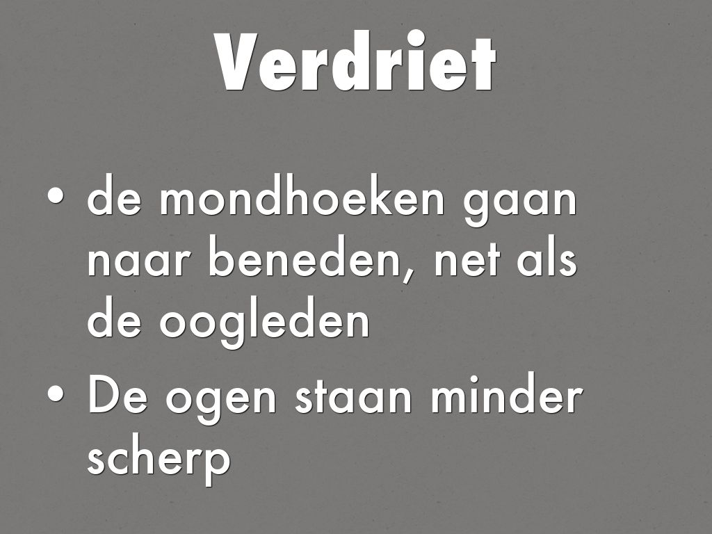 : de mondhoeken gaan naar beneden, net als de oogleden. De ogen staan minder scherp.