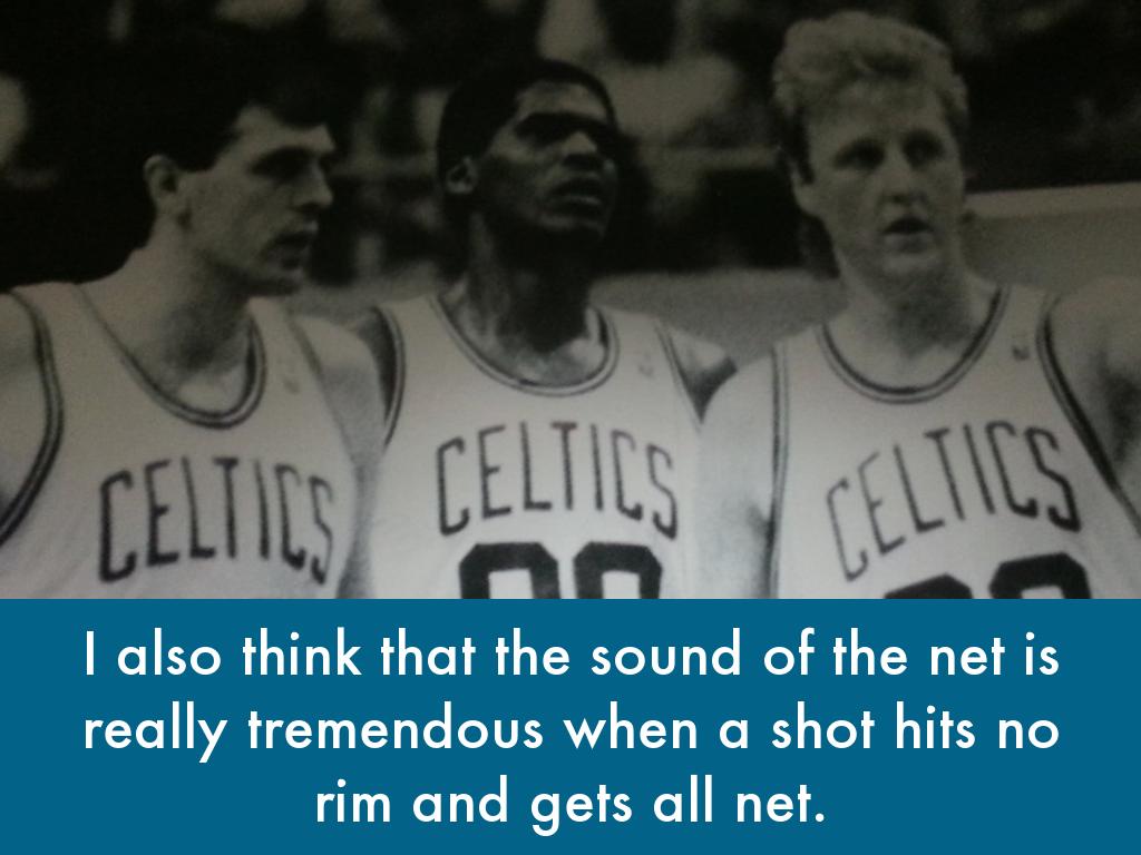 I also think that the sound of the net is really tremendous when a shot hits no rim and gets all net.