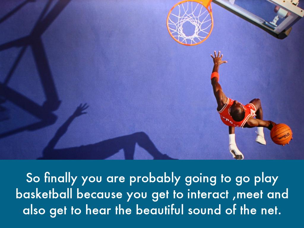 So finally you are probably going to go play basketball because you get to interact ,meet and also get to hear the beautiful sound of the net.