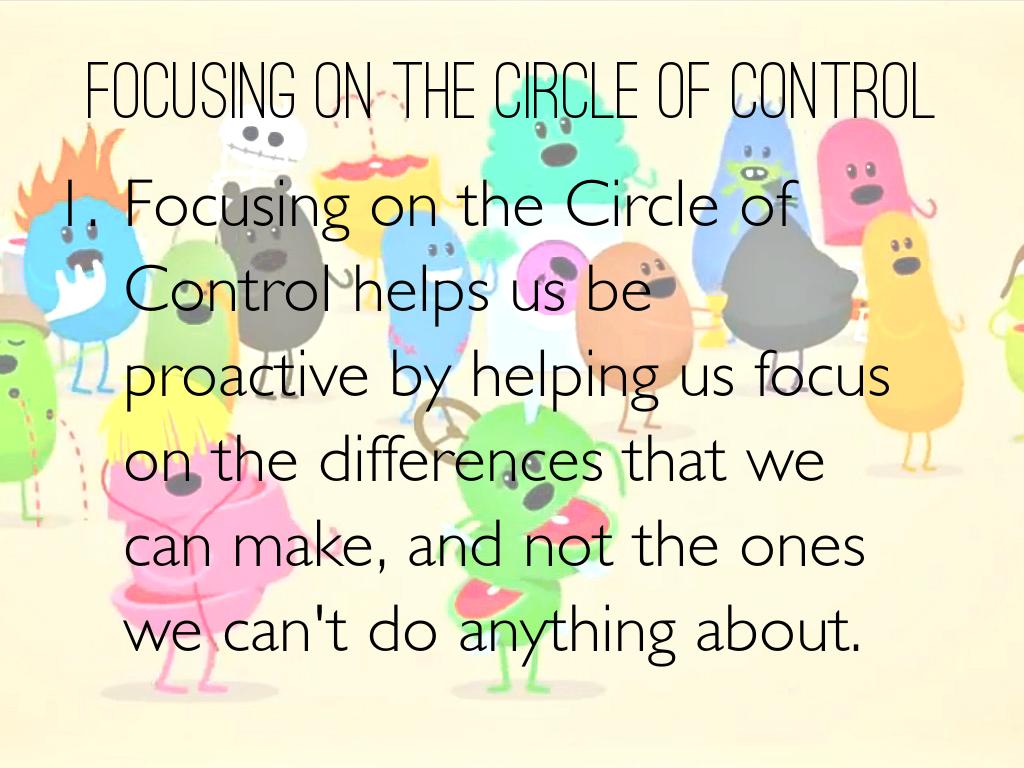 Focusing on the Circle of Control helps us be proactive by helping us focus on the differences that we can make, and not the ones we can't do anything about.
