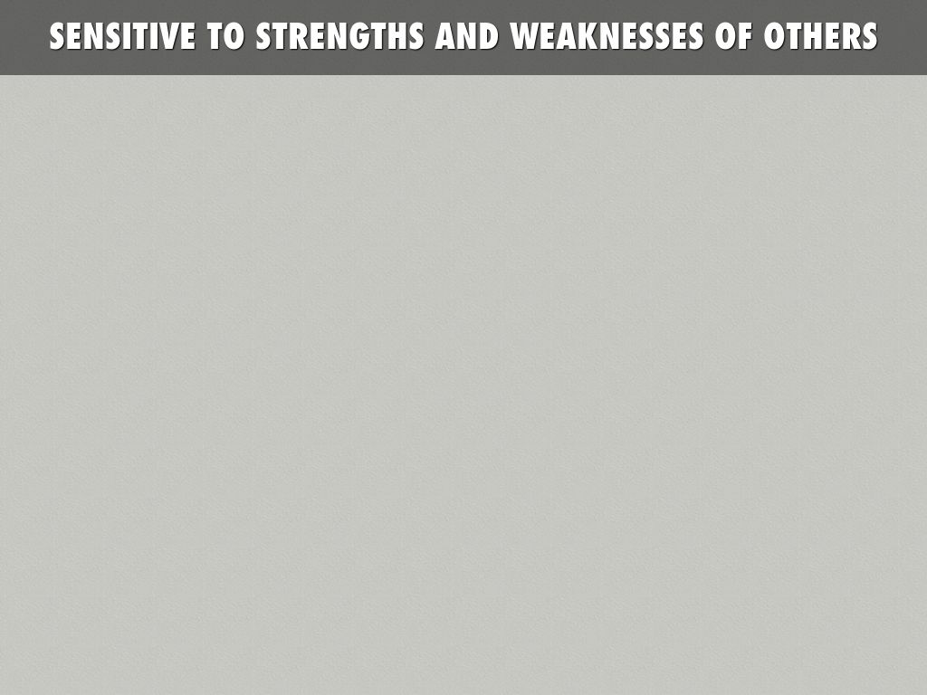 SENSITIVE TO STRENGTHS AND WEAKNESSES OF OTHERS