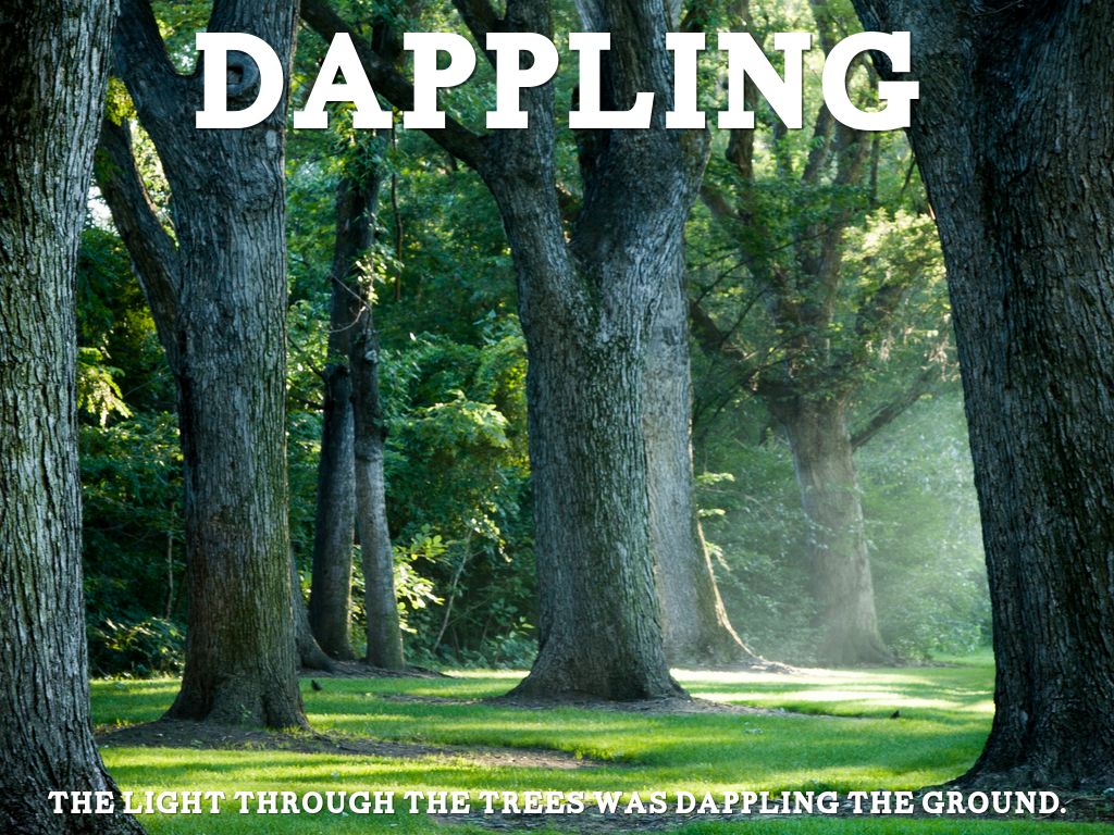 THE LIGHT THROUGH THE TREES WAS DAPPLING THE GROUND.