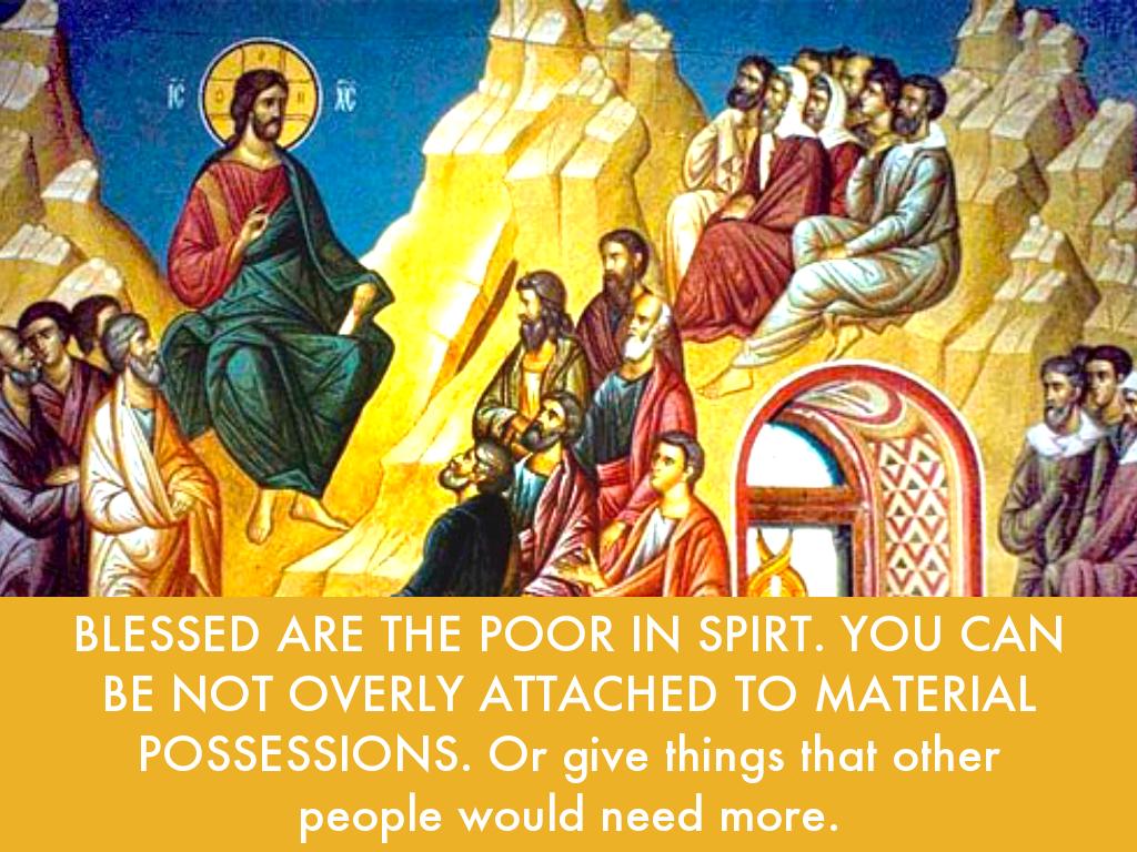 BLESSED ARE THE POOR IN SPIRT. YOU CAN BE NOT OVERLY ATTACHED TO MATERIAL POSSESSIONS. Or give things that other people would need more.
