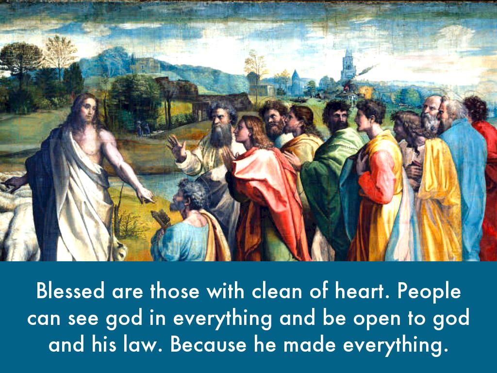 Blessed are those with clean of heart. People can see god in everything and be open to god and his law. Because he made everything.