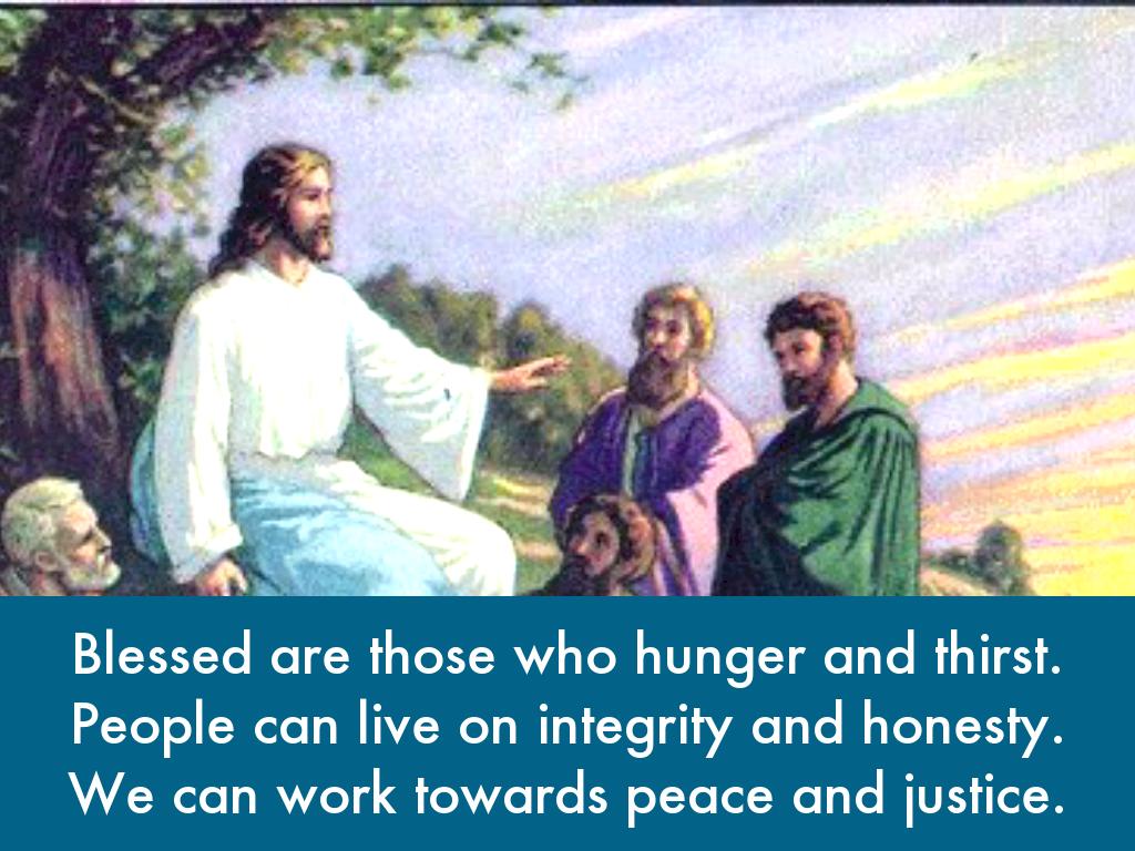 Blessed are those who hunger and thirst. People can live on integrity and honesty. We can work towards peace and justice.