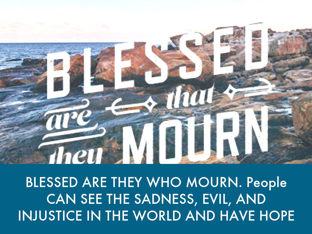 BLESSED ARE THEY WHO MOURN. People CAN SEE THE SADNESS, EVIL, AND INJUSTICE IN THE WORLD AND HAVE HOPE