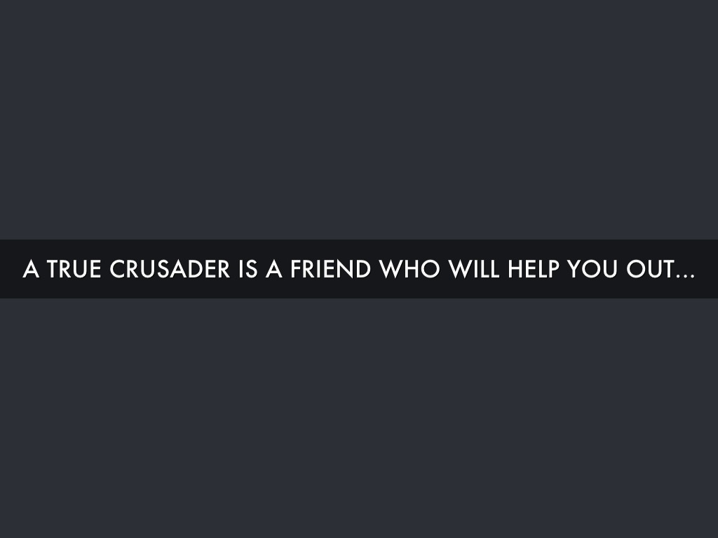 A TRUE CRUSADER IS A FRIEND WHO WILL HELP YOU OUT...