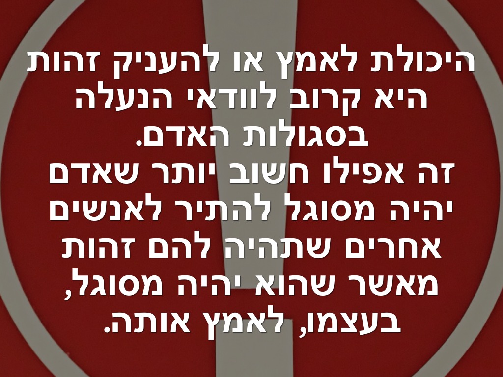 היכולת לאמץ או להעניק זהות היא קרוב לוודאי הנעלה בסגולות האדם.