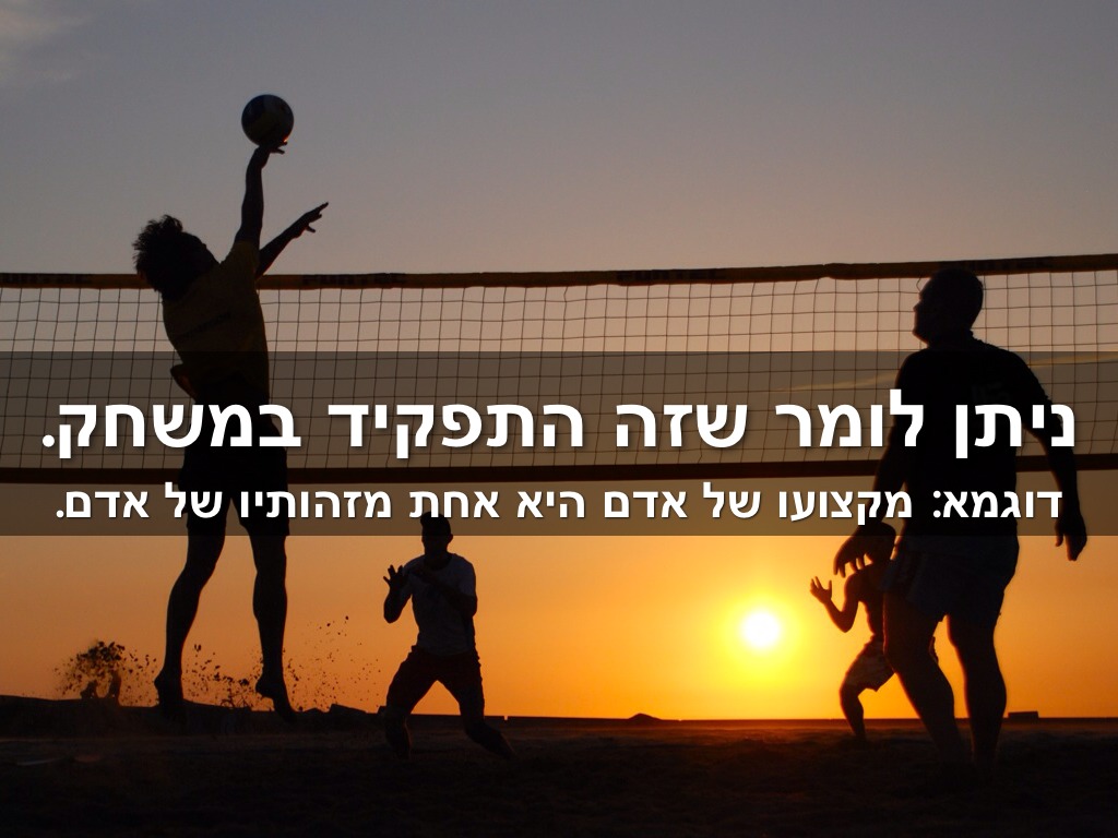 דוגמא: מקצועו של אדם היא אחת מזהותיו של אדם.