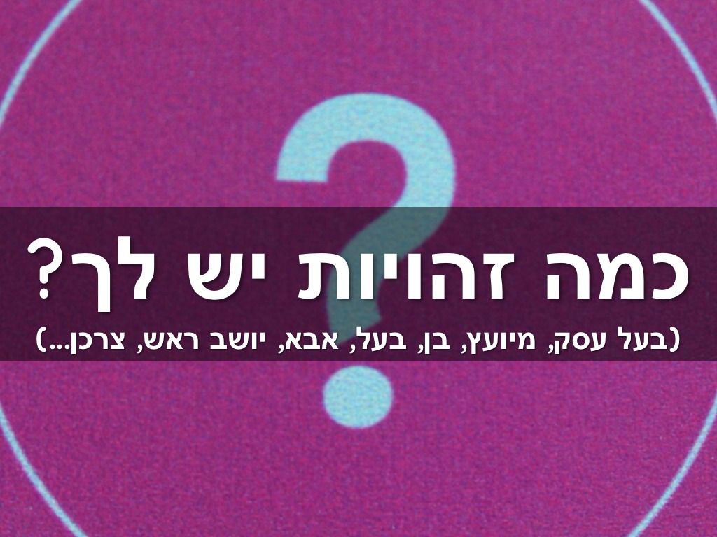 (בעל עסק, מיועץ, בן, בעל, אבא, יושב ראש, צרכן...)