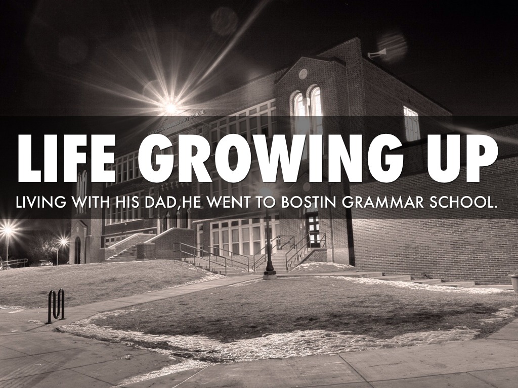 LIVING WITH HIS DAD,HE WENT TO BOSTIN GRAMMAR SCHOOL.