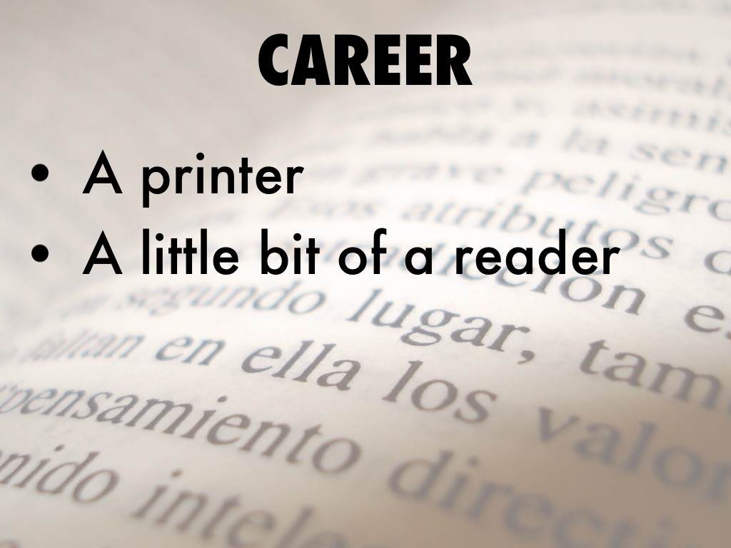 BEN WAS A PRINTER FOR 18 MONTHS.LAWS WERE HARD TO WRITE.