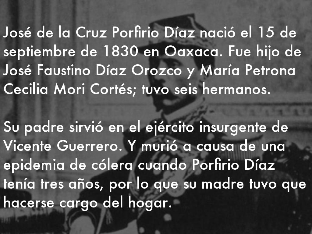 Su padre sirvió en el ejército insurgente de Vicente Guerrero. Y murió a causa de una epidemia de cólera cuando Porfirio Díaz tenía tres años, por lo que su madre tuvo que hacerse cargo del hogar.