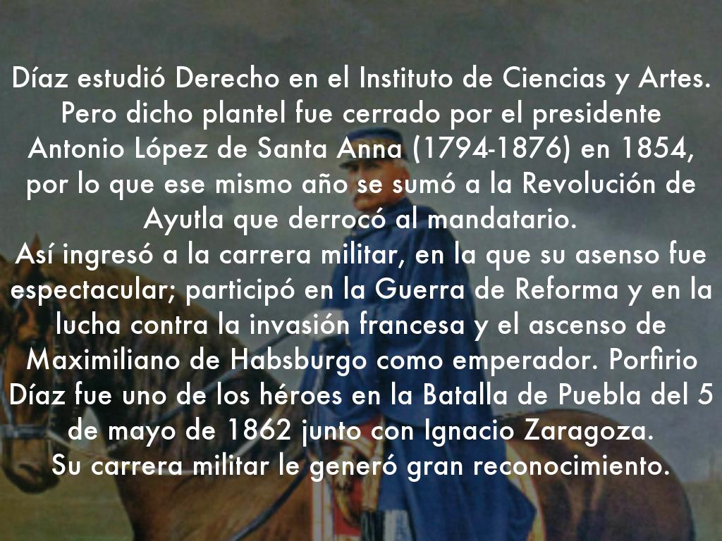 Díaz estudió Derecho en el Instituto de Ciencias y Artes. Pero dicho plantel fue cerrado por el presidente Antonio López de Santa Anna (1794-1876) en 1854, por lo que ese mismo año se sumó a la Revolución de Ayutla que derrocó al mandatario.