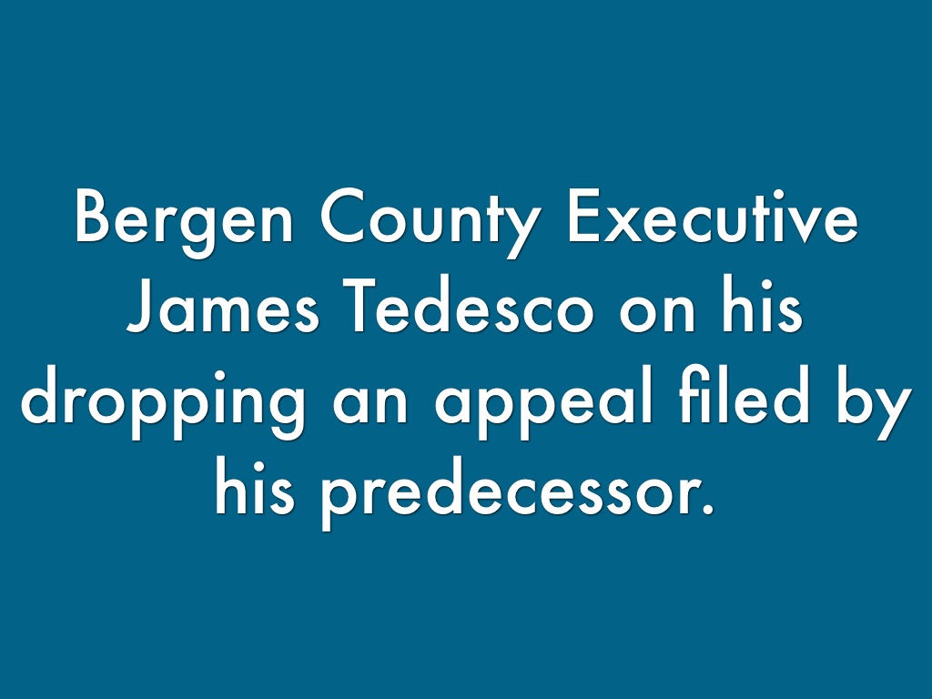 Bergen County Executive James Tedesco on his dropping an appeal filed by his predecessor.