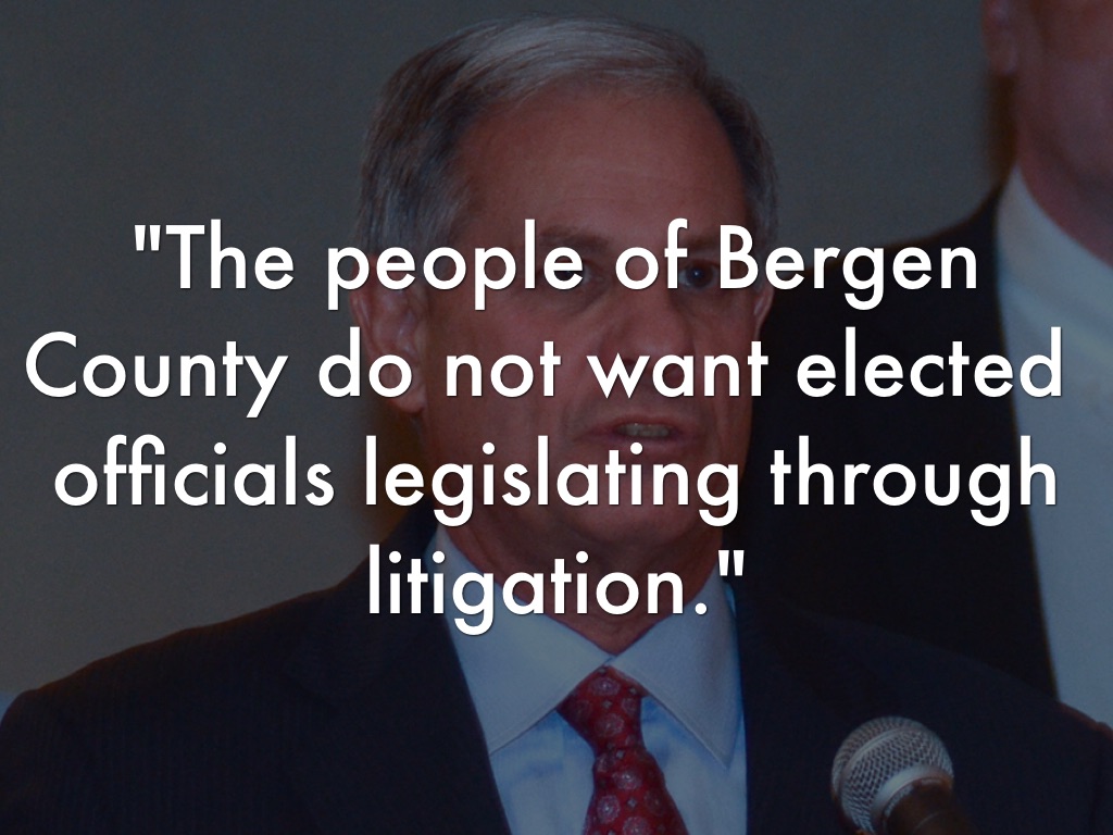 "The people of Bergen County do not want elected officials legislating through litigation."