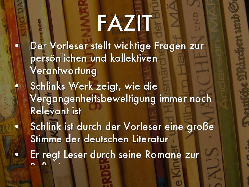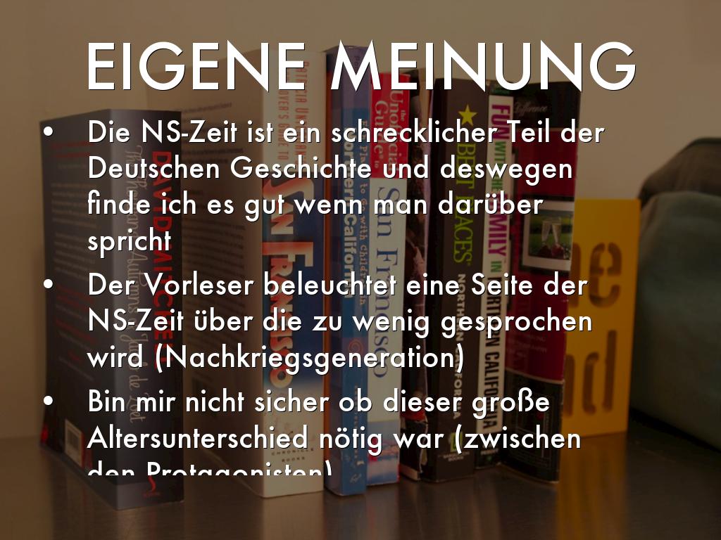 • Der Vorleser beleuchtet eine Seite der NS-Zeit über die zu wenig gesprochen wird (Nachkriegsgeneration)