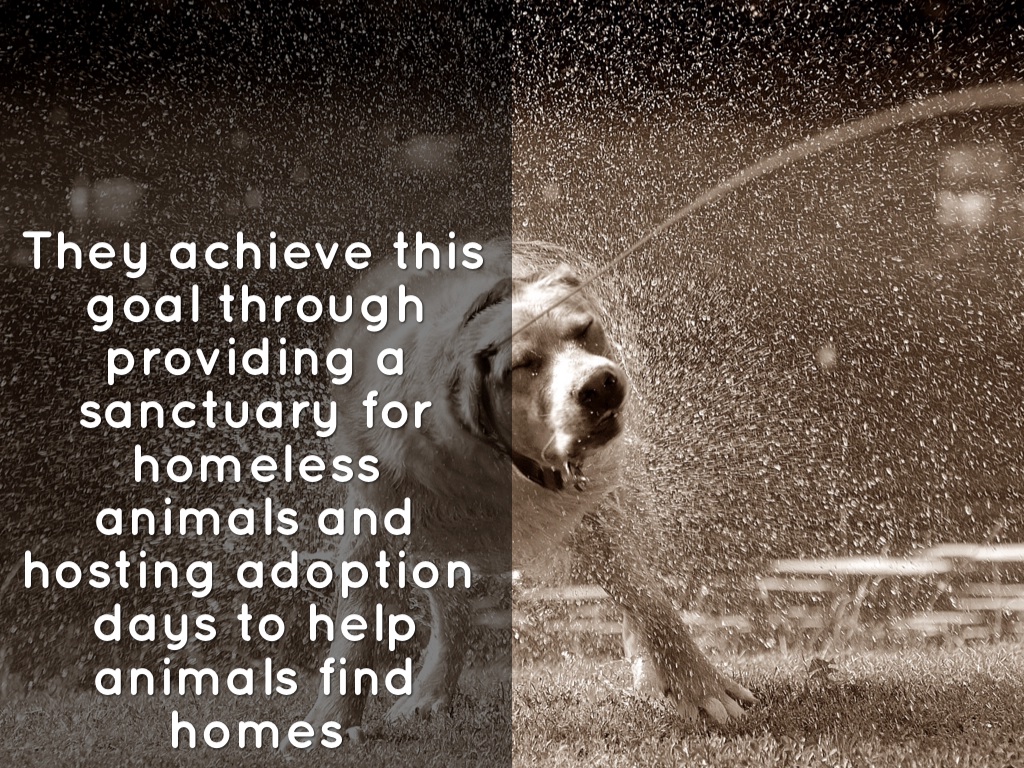 They achieve this goal through providing a sanctuary for homeless animals and hosting adoption days to help animals find homes