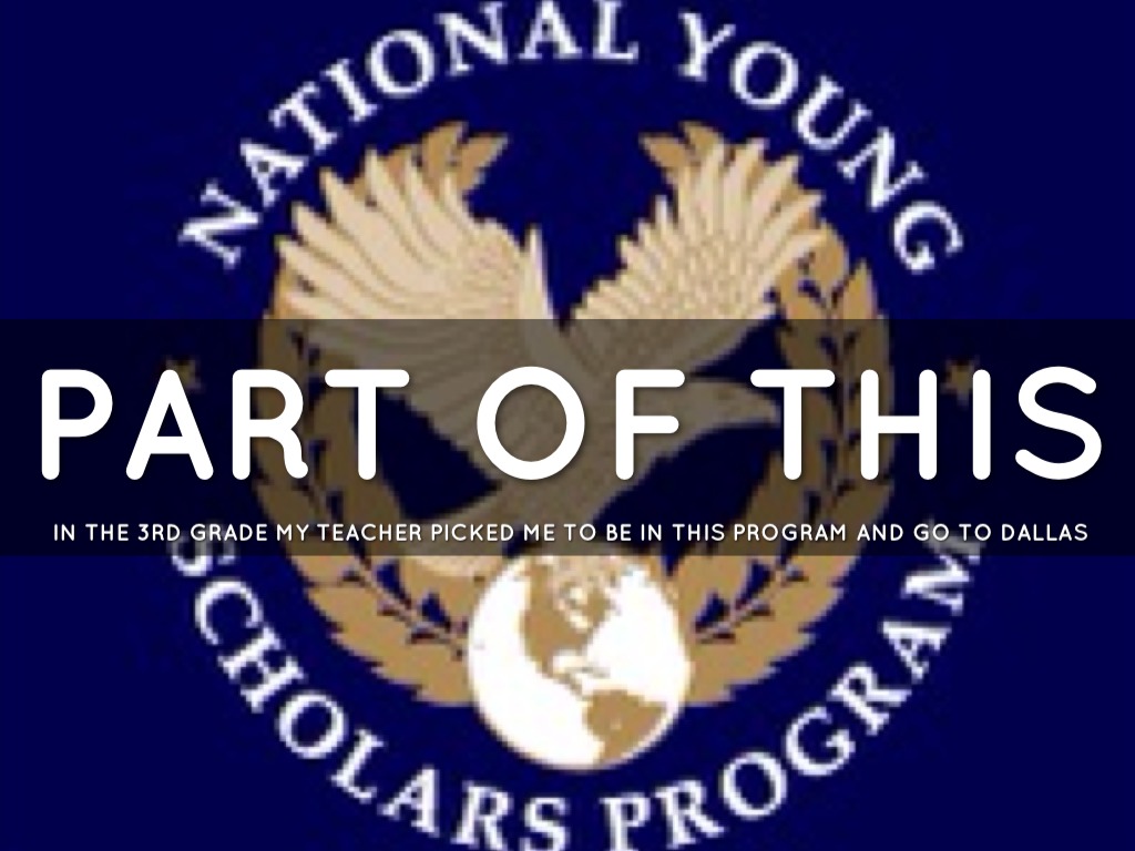 IN THE 3RD GRADE MY TEACHER PICKED ME TO BE IN THIS PROGRAM AND GO TO DALLAS
