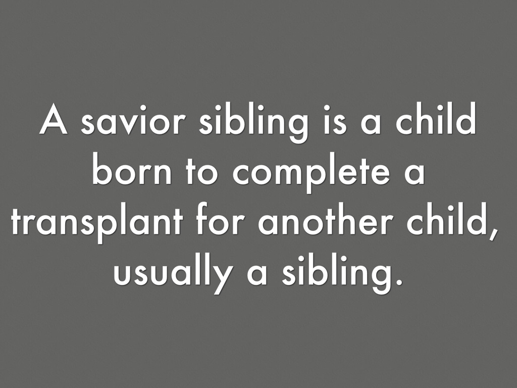 A savior sibling is a child born to complete a transplant for another child, usually a sibling.