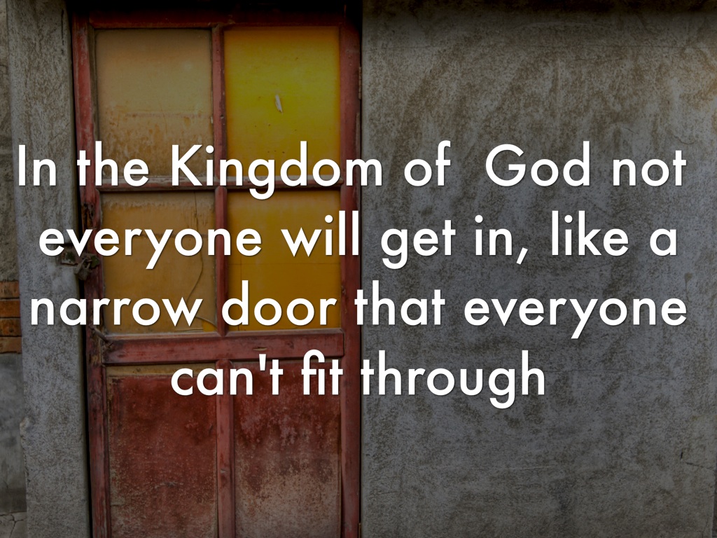 In the Kingdom of God not everyone will get in, like a narrow door that everyone can't fit through