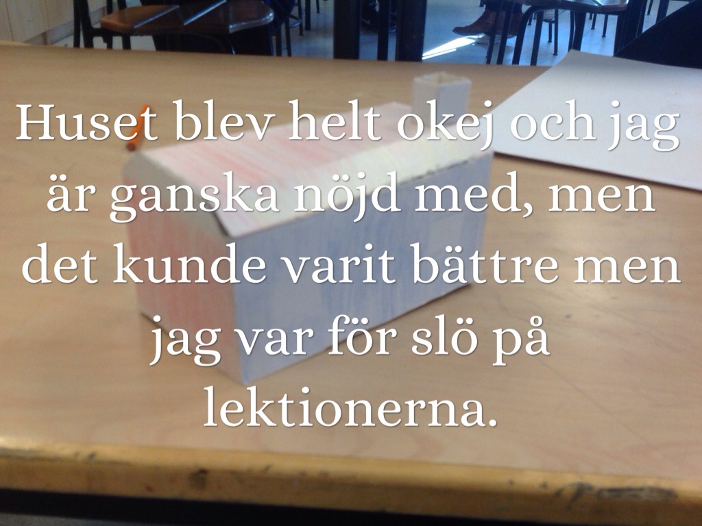 Huset blev helt okej och jag är ganska nöjd med, men det kunde varit bättre men jag var för slö på lektionerna.