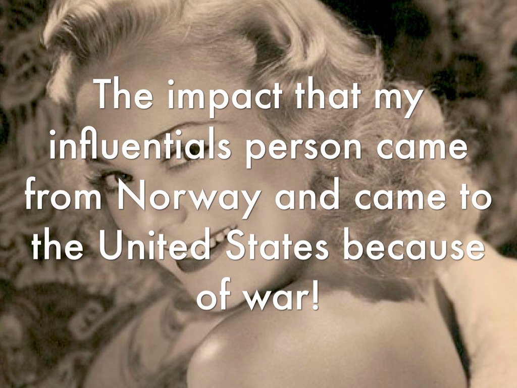 The impact that my influentials person came from Norway and came to the United States because of war!
