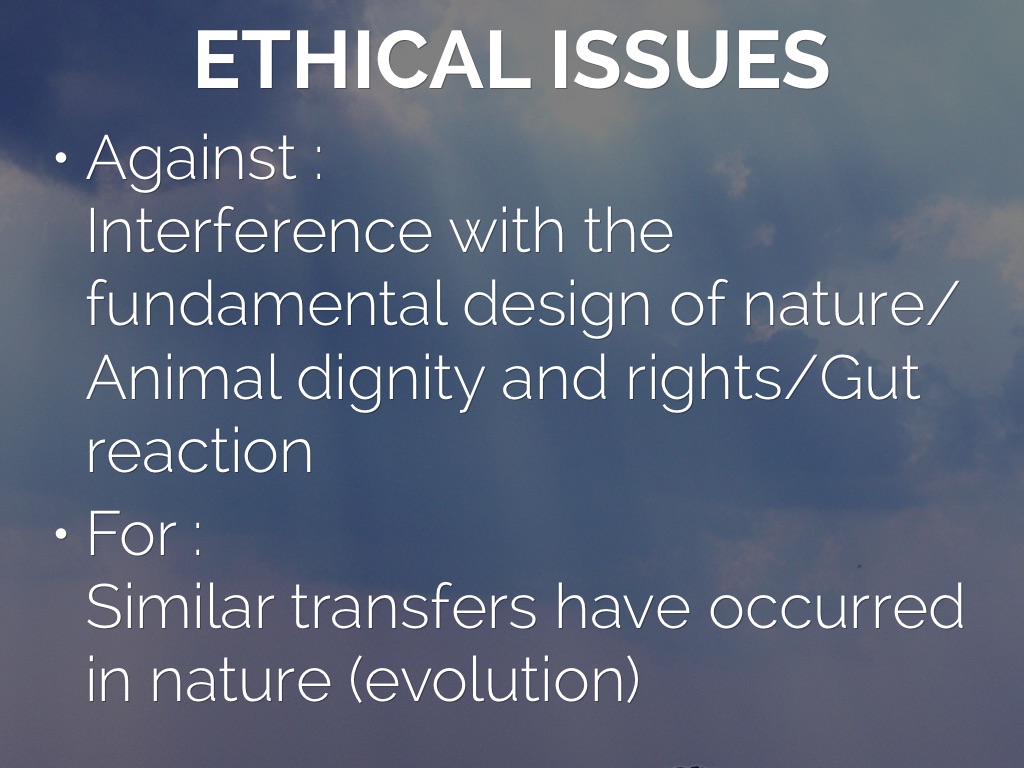 Against : Interference with the fundamental design of nature/Animal dignity and rights/Gut reaction