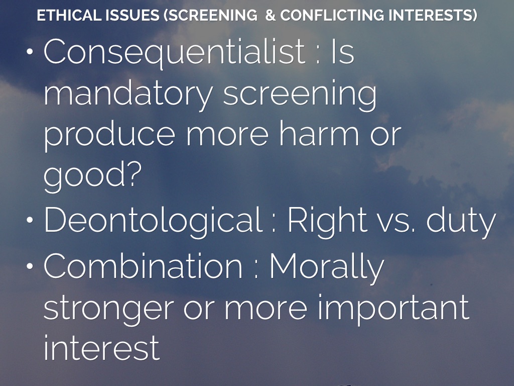 Consequentialist : Is mandatory screening produce more harm or good?