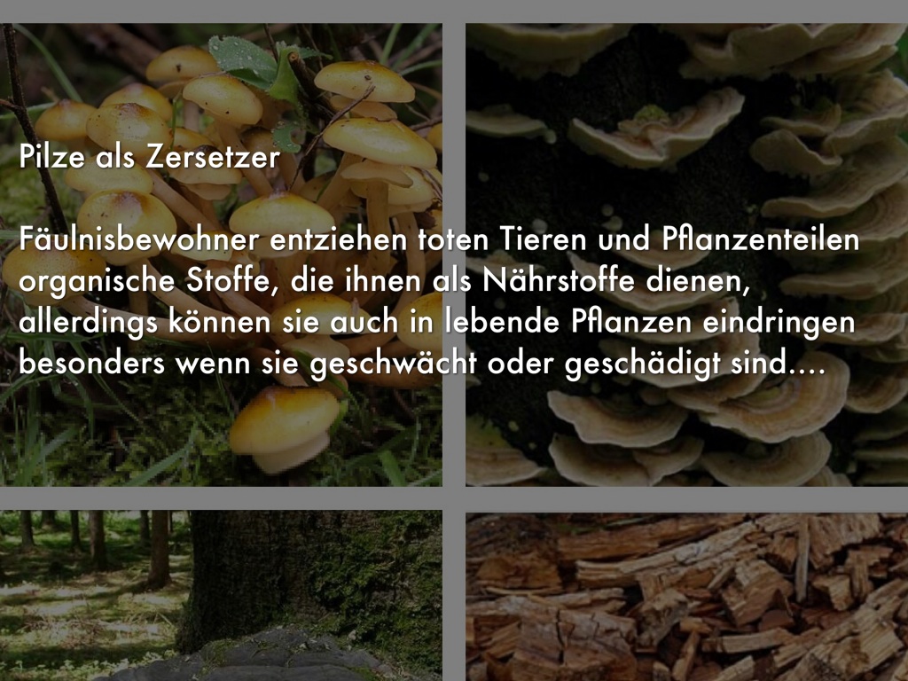 Fäulnisbewohner entziehen toten Tieren und Pflanzenteilen organische Stoffe, die ihnen als Nährstoffe dienen, allerdings können sie auch in lebende Pflanzen eindringen besonders wenn sie geschwächt oder geschädigt sind.
