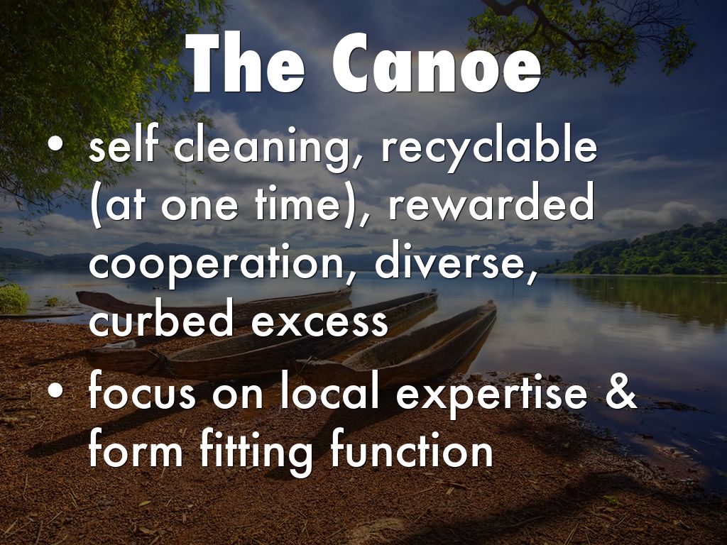 • self cleaning, recyclable (at one time), rewarded cooperation, diverse, curbed excess