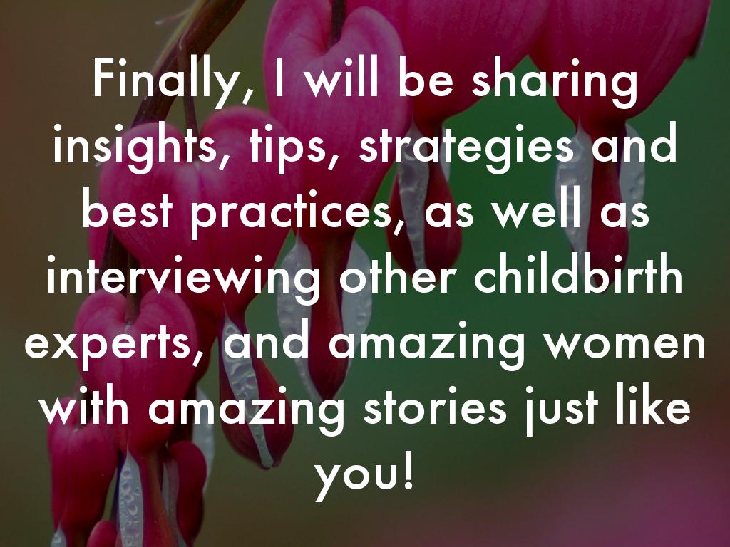 Finally, I will be sharing insights, tips, strategies and best practices, as well as interviewing other childbirth experts, and amazing women with amazing stories just like you!