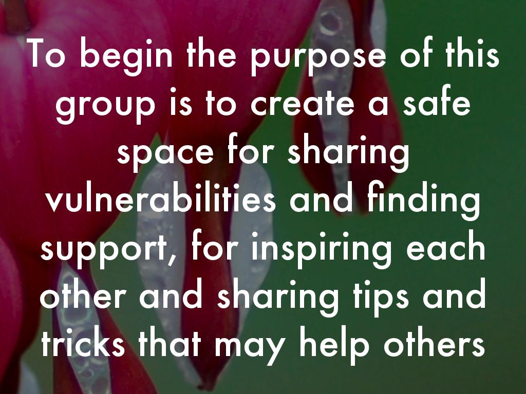 To begin the purpose of this group is to create a safe space for sharing vulnerabilities and finding support, for inspiring each other and sharing tips and tricks that may help others