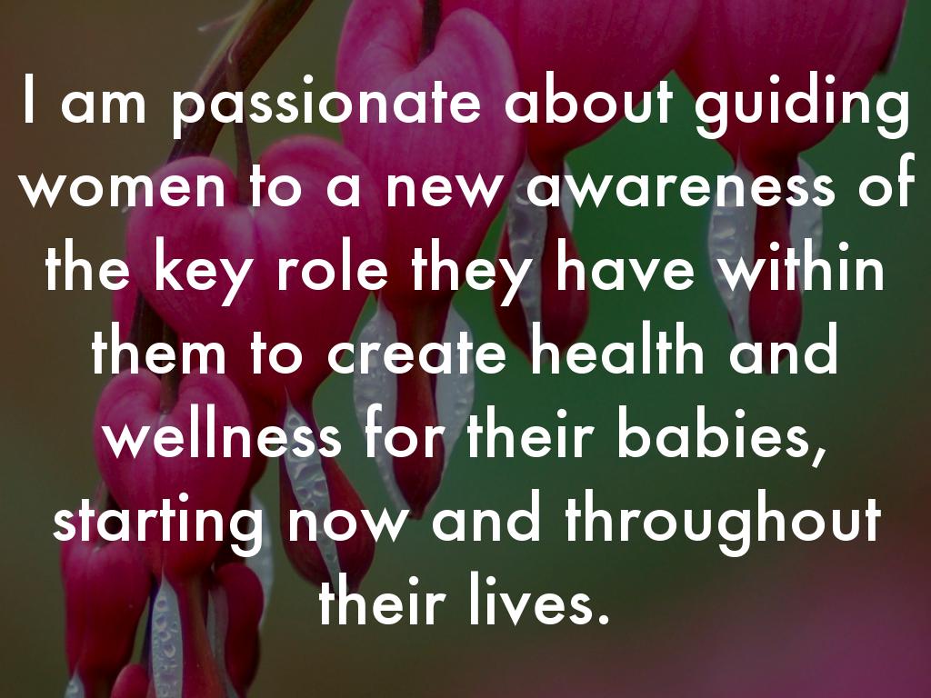 I am passionate about guiding women to a new awareness of the key role they have within them to create health and wellness for their babies, starting now and throughout their lives.