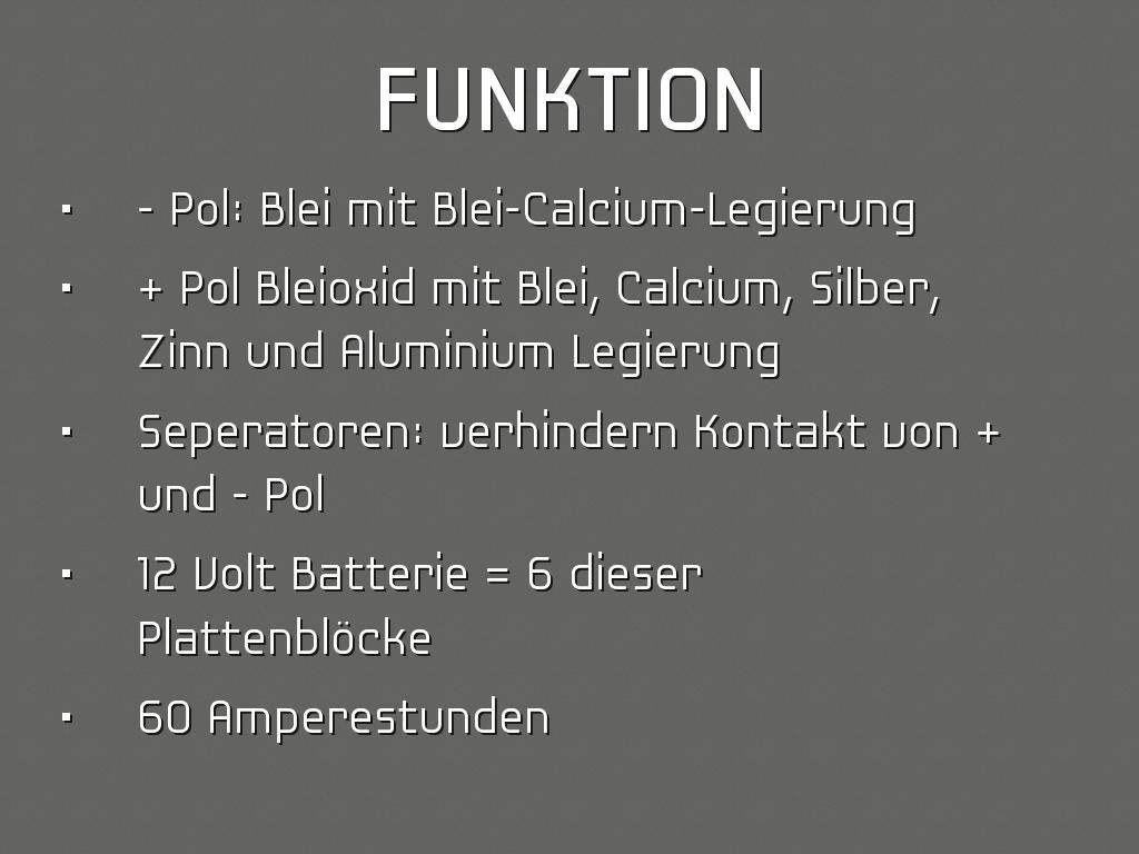 • Elektroden: Blei/Bleidioxid