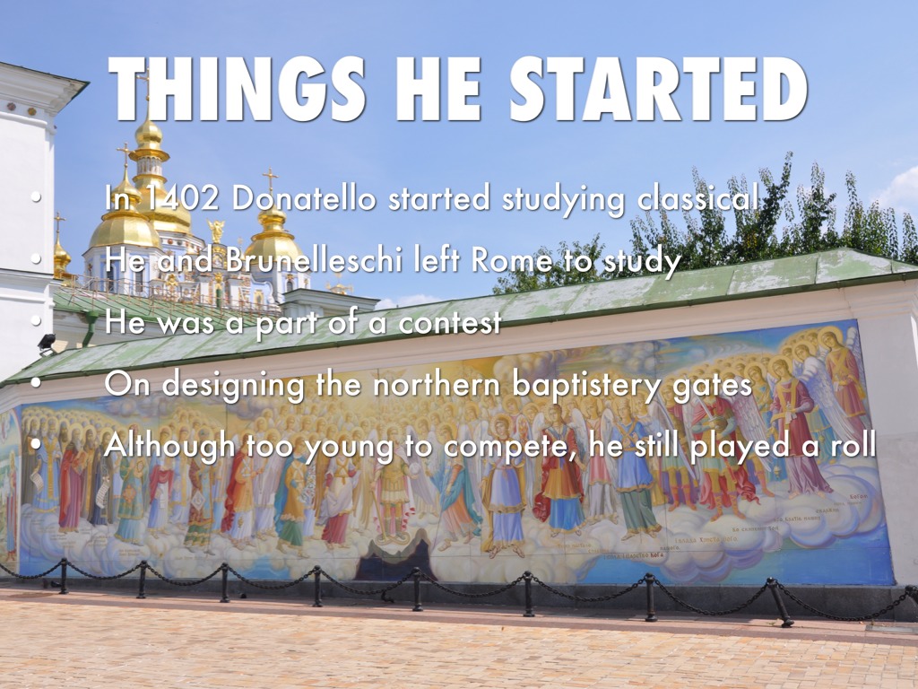 . A&E Networks Television, n.d. Web. 06 Dec. 2013. 2nd "Famous Quotes about Donatello the Artist?" WikiAnswers. Answers, n.d. Web. 09 Dec. 2013 3rd "Donatello." Donatello. N.p., n.d. Web. 11 Dec. 2013. 4th "Humanistic Art." Boundless. N.p., n.d. Web. 11 Dec. 2013.