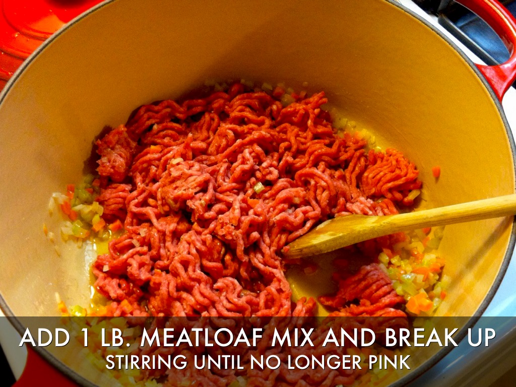 ADD 1 LB. MEATLOAF MIX AND BREAK UP